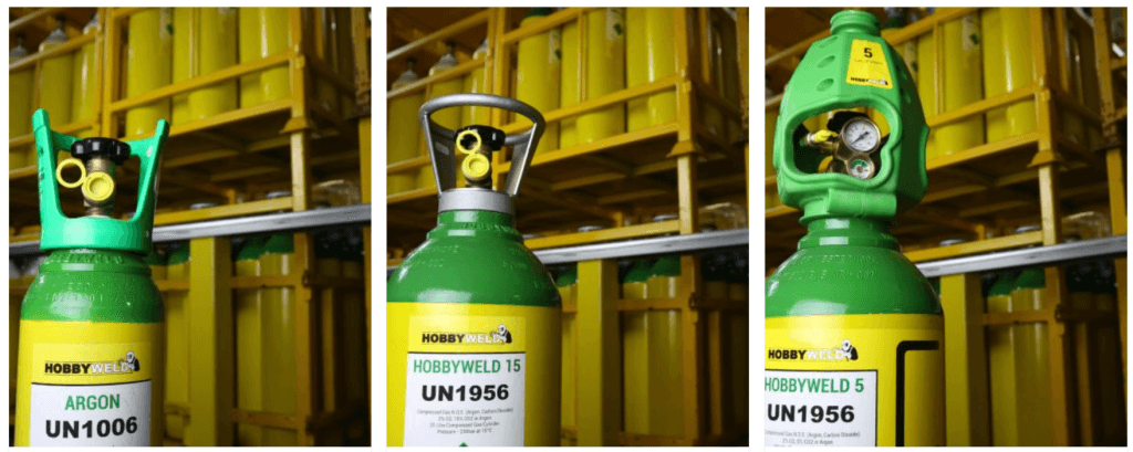 Hobbyweld 15 – gets its name from 15% carbon dioxide content. The extra CO2 gives this gas the capability to MIG weld steel between 5mm & 12mm thick. Welders will experience good arc stability which is due in part to the 2% oxygen content.